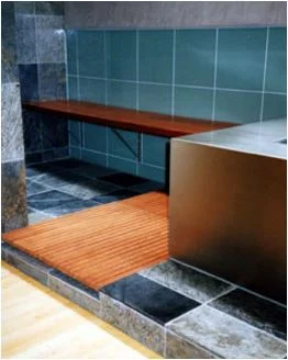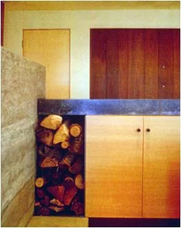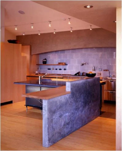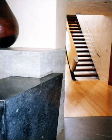 Colored plaster walls, wood, stone and concrete are carefully composed to create the feel of a sanctuary removed from the everyday world.